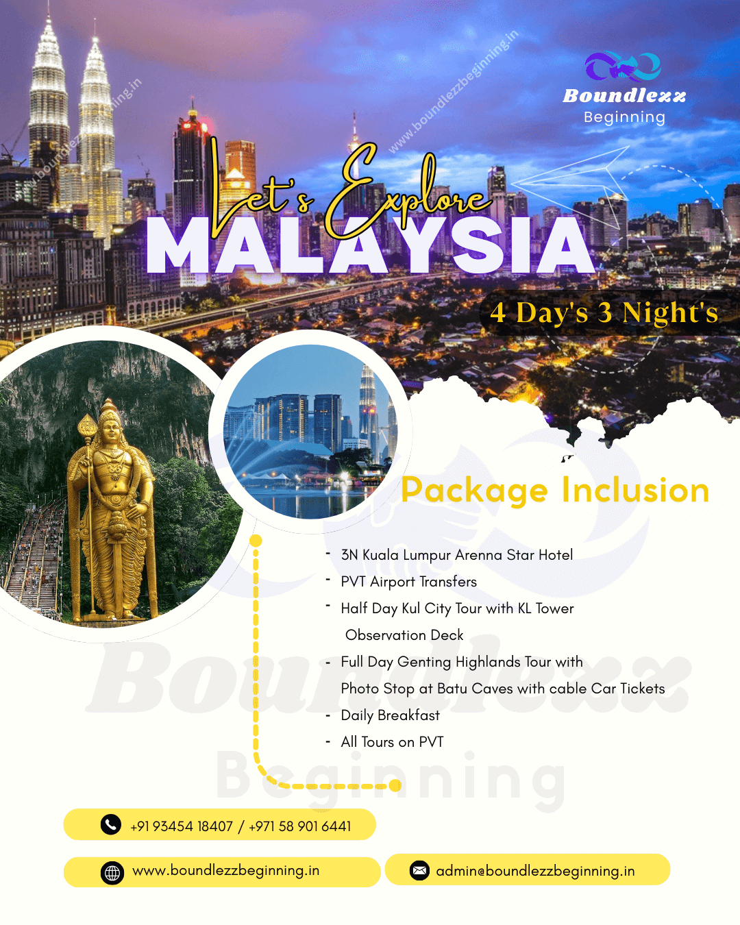 At Boundlezz Beginning, we believe that travel is more than just visiting a place—it’s about experiencing new cultures, creating lasting memories, and exploring the world with ease. With over a decade of expertise, we offer a wide range of domestic and international travel solutions tailored to meet the unique needs of families, groups, corporate clients, and solo travelers. Whether you’re planning a relaxing holiday, a business trip, or an adventurous getaway, we ensure every detail is taken care of, so you can focus on enjoying your journey.
